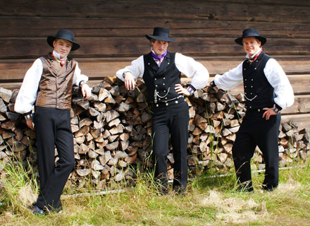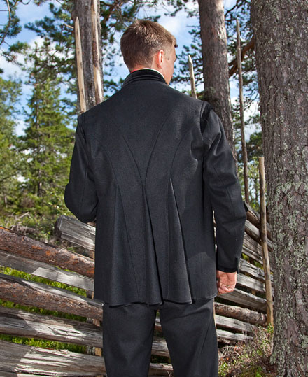 Denne herrebunaden med langbukse og/eller knebukse, svart vest og ”fiskekjølke-trøye” representerer den yngste draktskikken i Krødsherad, Sigdal og Eggedal.